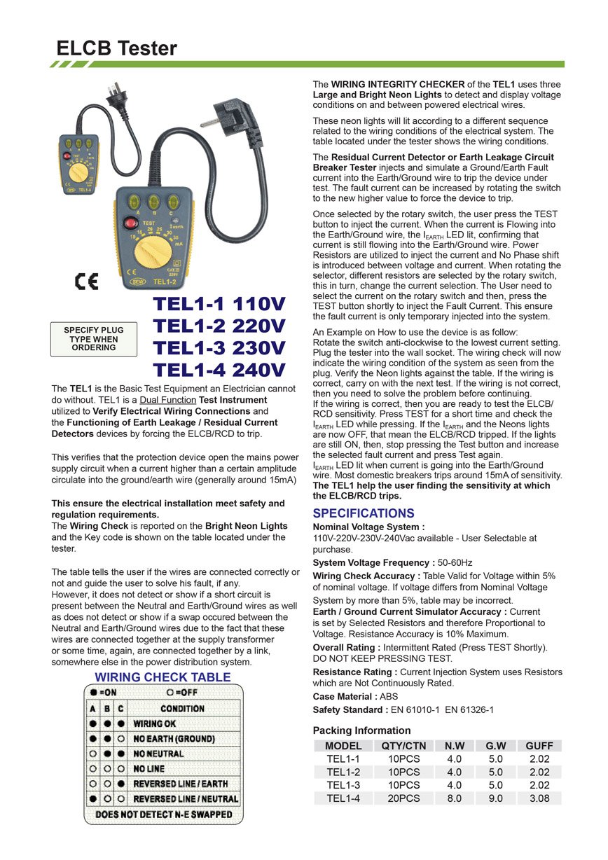 SEW0057-KKINSTRUMENTS TEL-1-3 230V UK PLUG SOCKET TESTER (WITH ELCB FUNCTION)