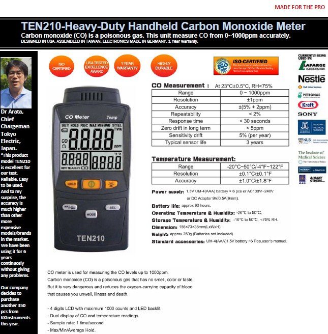 - CO range: 0 ~ 1,000ppm.